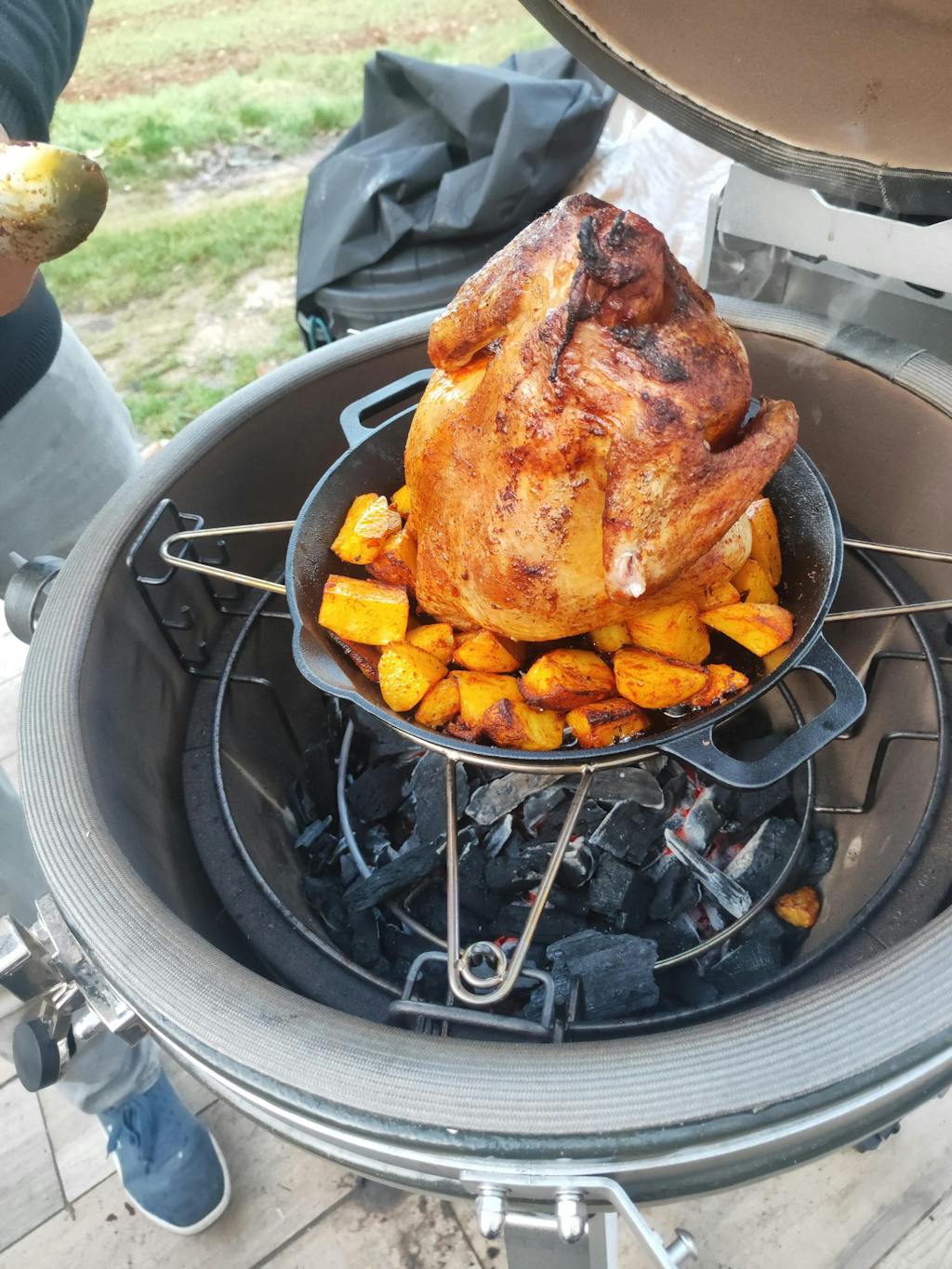 Usage advice: Thread the poultry onto the central cone and place the stand on the Kokko Kamado grill.