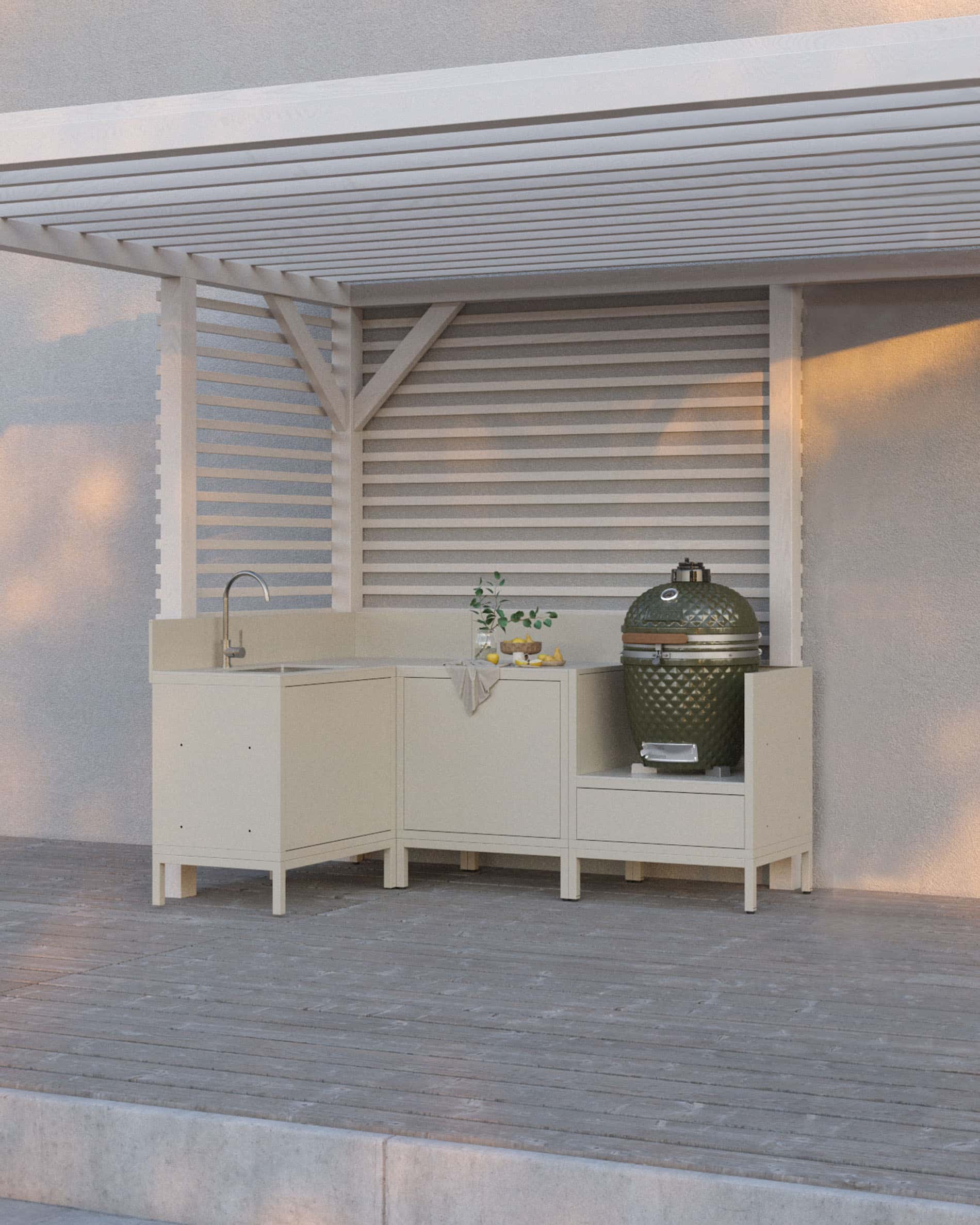 Cucina da esterno PILOTIS - 4 moduli, lavello in acciaio inox e modulo angolare per Kokko